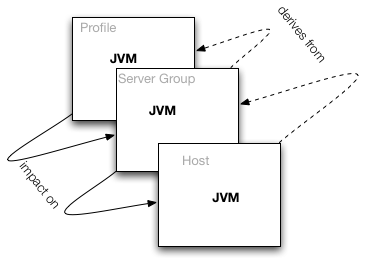 If you think of these levels as being layered atop of each other, then Profiles would be the bottom most configuration level that acts as a blueprint for the layers atop of it. Profiles consist of subsystem specific settings (i.e. JCA, TX, etc) and are referenced by Server Groups.
